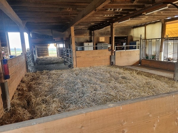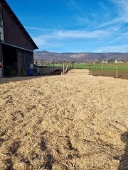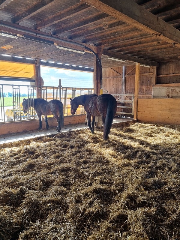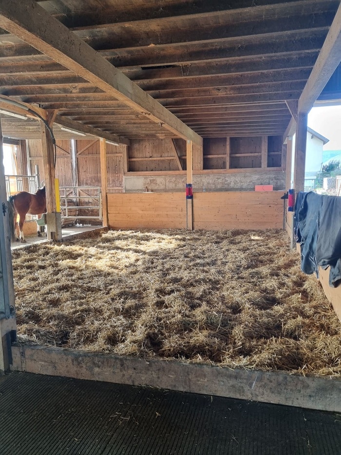 Foin et paille de qualité du domaine. Aliment pour chevaux à la retraite compris dans le prix.